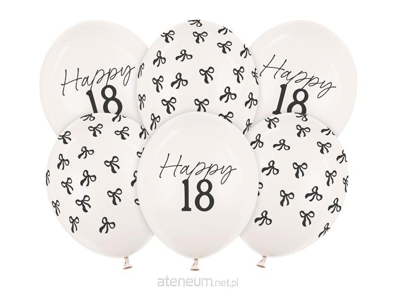 Balony Strong ''18'' w kolorze Pastel Off-white z nadrukiem, średnica ok. 30 cm.(1 op. / 6 szt.)