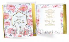 Elegancki karnet na Ślubny w formacie B6 z laserowo wycinanym wzorem. Delikatny, ażurowy motyw z symbolami ślubnymi. Wewnątrz miejsce na życzenia. Idealna pamiątka tego ważnego dnia.