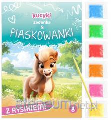 Odkrywaj tajemnice, porównuj elementy i szukaj właściwych dróg. Koloruj sympatycznych bohaterów barwnym piaskiem. Rozwiąż wesołe zadania wymagające nieco piaskowania! Zawarte w książeczce ćwiczenia i związane z nimi piaskowanki pomogą dzieciom doskonalić spostrzegawczość i umiejętność kojarzenia. Pozwolą też rozwijać sprawność manualną i przygotują rękę do pisania. Zestaw z serii ,,Zadanka & Piaskowanki" zawiera: książeczkę z zadaniami, 3 karty do pokolorowania piaskiem, 6 woreczków z kolorowymi piaskami, rysik. Wskazówki co do użycia poszczególnych kolorów na oznaczonych polach malowanki znajdują się w zadaniach. Karty przeznaczone do kolorowania zostały powleczone klejem - do zabawy nie są niezbędne żadne przybory spoza zestawu. Wszystkie elementy spakowano w kartonową kopertę i nie podlegają osobnej sprzedaży.