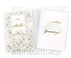 Elegancki karnet na Ślubny w formacie B6 z laserowo wycinanym wzorem. Delikatny, ażurowy motyw z symbolami ślubnymi. Wewnątrz miejsce na życzenia. Idealna pamiątka tego ważnego dnia.