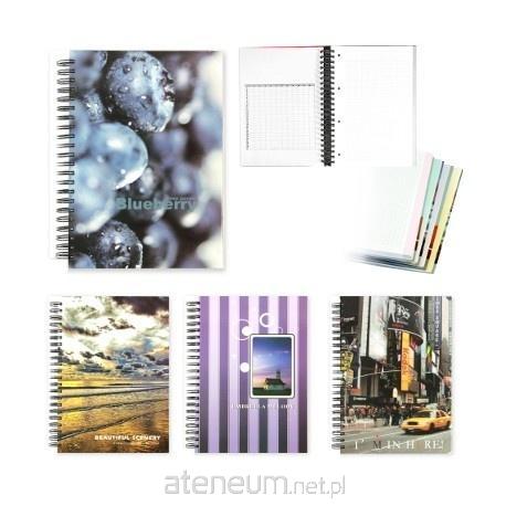 posiada barwione brzegi (4 sekcje tematyczne) i przednią zakładkę umożliwiającą przechowywanie dodatkowych notatek