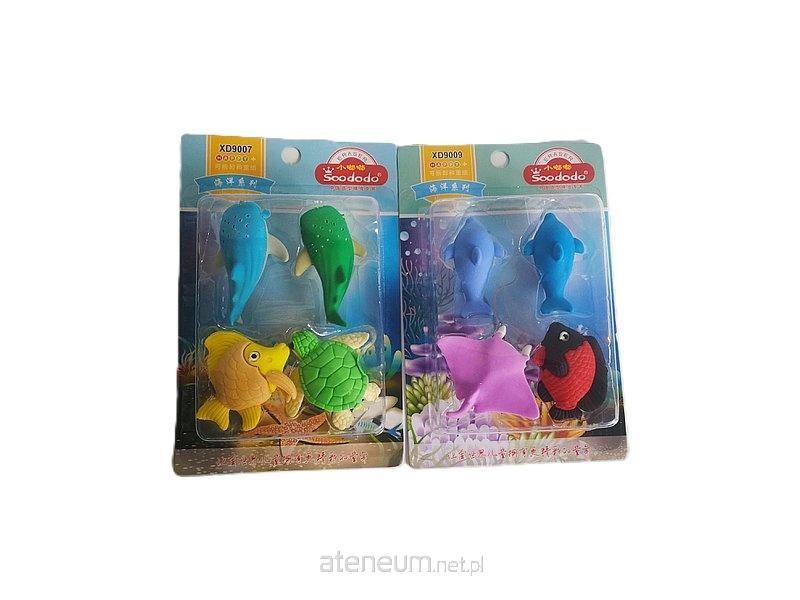 Zestaw 4 gumek do ścierania - zwierzęta morskie; 14,5x9,5x3cm, B/C.