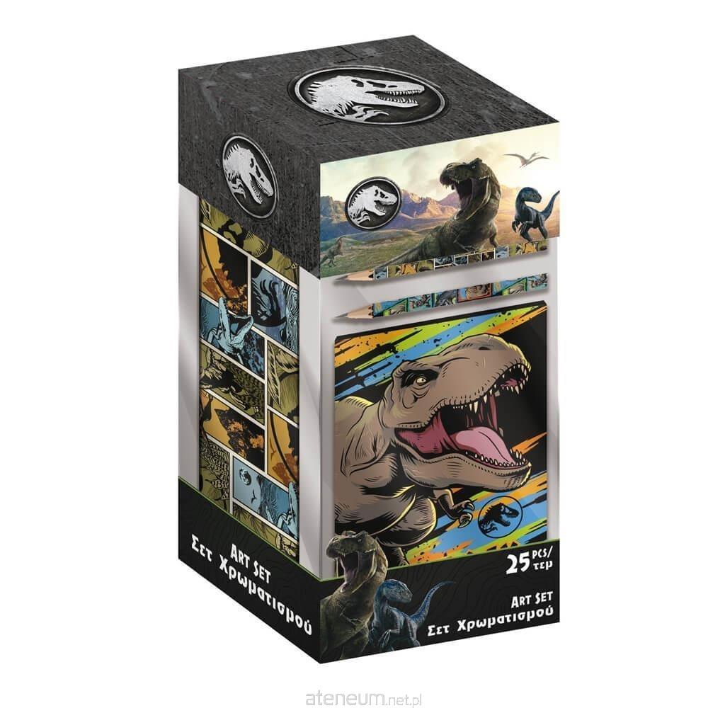 Zestaw przyborów zapakowany w ozdobne opakowanie prezentowe. Zestaw zawiera: - metalowy piórnik - kolorowanka (8 arkuszy) - 7 kredek ołówkowych - 2 ołówki HB - notesik - gumka do mazania - temperówka - 3 pisaki