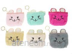 Portmonetka pluszowa kotek 12x9x1,5cm MIX
