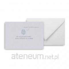 Otwierana kartka, pusta w środku, wykonana na papierze (z certyfikatem EFC) z wyraźnie widoczną fakturą. W zestawie ekologiczna koperta.