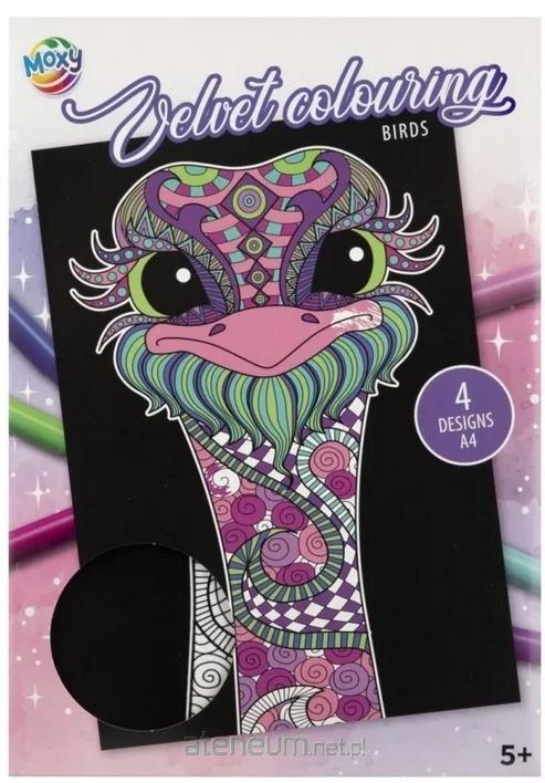 Kolorowanka Velvet Ptaki to wyjątkowy rodzaj kolorowanki, który wyróżnia się zarówno tematyką, jak i materiałem wykonania Velvet Ptaki to artystyczna kolorowanka. Każda ilustracja wykonana jest na specjalnym papierze pokrytym czarnym, aksamitnym konturem (tzw. velvet/velur), który: