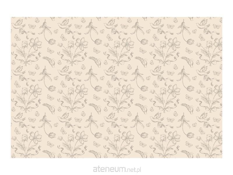 Jednorazowy, jednostronny, prostokatny obrus o wymiarach 180 x 120 cm w kolorze beżowym z ciemnobeżowymi kwiatami. Obrus wykonany z materiału syntetycznego.