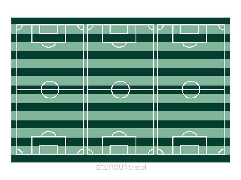 Obrus jednostronny Boisko piłkarskie w kolorze miętowo-ciemnozielonym z białymi akcentami. Rozmiar ok. 120 x 180 cm.
