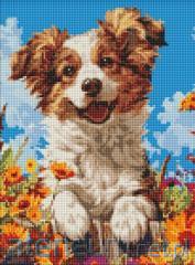 Diamentowa mozaika bez ramy -Pies w kwiatach 30x40