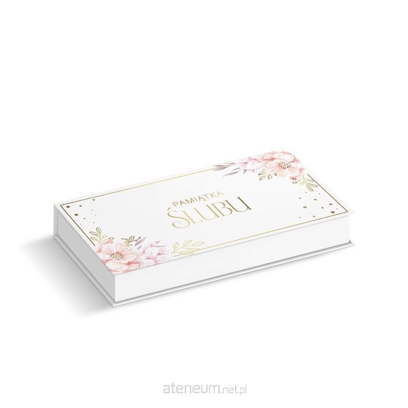 Ozdobne Pudełko PD Pamiątka Ślubu - to doskonały sposób na estetyczne i wyjątkowe zapakowanie banknotu lub karty podarunkowej. Jego klasyczny design podkreślają złote zdobienia, które dodają mu szyku i podniosłego charakteru. Magnetyczne zamknięcie sprawia, że pudełko można wielokrotnie otwierać i zamykać, a starannie dobrane życzenia w środku czynią je idealnym wyborem na szczególne okazje. Wymiary produktu: 18 cm x 9 cm Zamknięcie: magnetyczne Wnętrze: eleganckie życzenia w środku