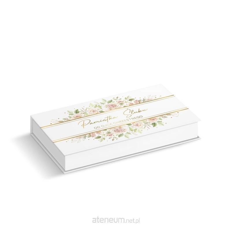 Ozdobne Pudełko PD Pamiątka Ślubu- to doskonały sposób na estetyczne i wyjątkowe zapakowanie banknotu lub karty podarunkowej. Jego klasyczny design podkreślają złote zdobienia, które dodają mu szyku i podniosłego charakteru. Magnetyczne zamknięcie sprawia, że pudełko można wielokrotnie otwierać i zamykać, a starannie dobrane życzenia w środku czynią je idealnym wyborem na szczególne okazje. Wymiary produktu: 18 cm x 9 cm Zamknięcie: magnetyczne Wnętrze: eleganckie życzenia w środku