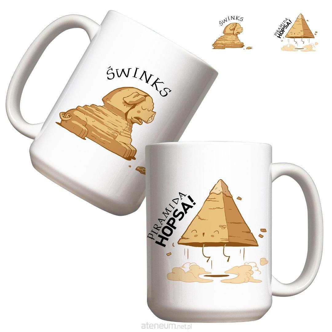 Egipskie żarty na wysokości! Świnks pilnuje, a Piramida Hopsa... skacze z radości Pojemność: 440ml Wysokość: 120 mm Średnica: 85 mm Materiał: ceramika