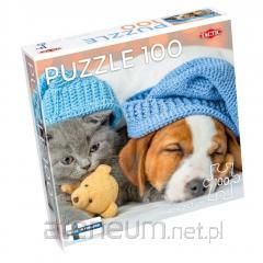 Puzzle 100 Cute Kitten and Sleepy Dog