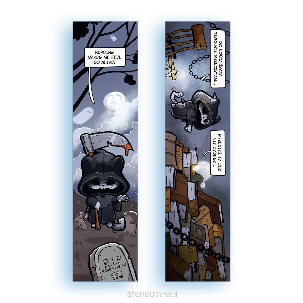 Czytaj z Trupciem przez całą wieczność! Karton ozdobny perłowy 300g, sztywny, metaliczno-srebrny połysk Wymiary: 50x200mm