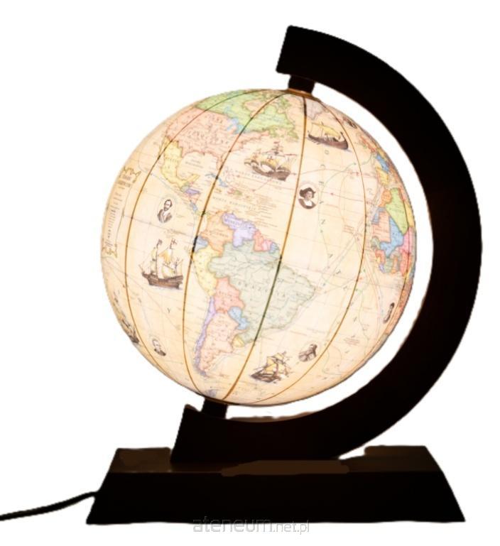 Globus trasami odkrywców 25cm w.ukraińska z opisem, drewniana oprawa podświetlany