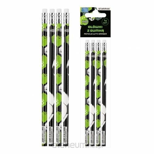 Ołówek nie łamie się podczas strugania, a gumka nie brudzi, ołówki to podstawowy produkt podczas nauki w szkole (rysowanie, matematyka, pisanie), łatwe w struganiu, nie łamią się, nie brudzą, uniwersalna twardość HB, każdy ołówek wyposażony w gumkę do mazania. Zestaw 4 ołówków z gumką z kolekcji STARPAK z grafiką z Football. Każdy ołówek zdobiony kolorową grafiką. Wykonany z trwałego drewna, zapewnia komfort rysowania i pisania. Służy nie tylko do rysowania i szkicowania, ale jest również niezbędny podczas lekcji matematyki, do nauki pisania, do robienia notatek na marginesach książek lub zeszytów. Dlatego tak ważna jest jego jakość. Dzięki wysokiej jakości grafit nie sypie się, nie brudzi i nie kruszy. Twardość HB sprawia, że ołówki STARPAK są uniwersalne i mogą być wykorzystywane zarówno do pisania, jak tez rysowania. Zapoznaj się również z innymi produktami STARPAK z serii Football! Zawartość opakowania: 4 szt. ołówków z gumką. Wykonane z odpornego, nie łamiącego się podczas strugania grafitu. Wymiary/waga: wymiary produktu (dł.)[cm]: 19 cm, wymiary opakowania (wys. x szer. x gł.)[cm]: 25x5x1, waga produktu bez opakowania 1szt.[kg]: 0,01 kg, waga produktu w opakowaniu [kg]: 0,02 kg. Produkt przeznaczony dla dzieci w wieku: 3+. Ołówki pakowane w folię z euro zawieszką .