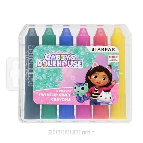 Kredki w sztyfcie STARPAK z kolekcji Gabyby's Dollhouse to miękkie, wykręcane kredki w intesywnych kolorach, które dają efekt suchej pasteli. Kredki zabezpieczone w plastikowej obudowie, która ułatwia ich utrzymanie w dłoni oraz zabezpiecza przed pobrudzeniem. Nadają sie do malowania na papierze, kartonie, drewnie, zmwywalne przy pomocy mydła i wody. W zestawie znajduje się 6 kredek w kolorze: granatowym, żółtym, czerwonym, c. zielonym, czarnym, różżowym. Zapoznaj się równiez z innymi produktami z kolekcji Gabby's Dollhousse. Wymiary/waga: wymiary produktu (dł.)[cm]: 10,5 cm, wymiary opakowania (dł. x wys. x gł.)[cm]: 13x13x3, waga produktu w opakowaniu [kg]: 0,12 kg. Nie odpowiednie dla dzieci poniżej 3 lat. Pakowane w plastikowe pudełeczko .