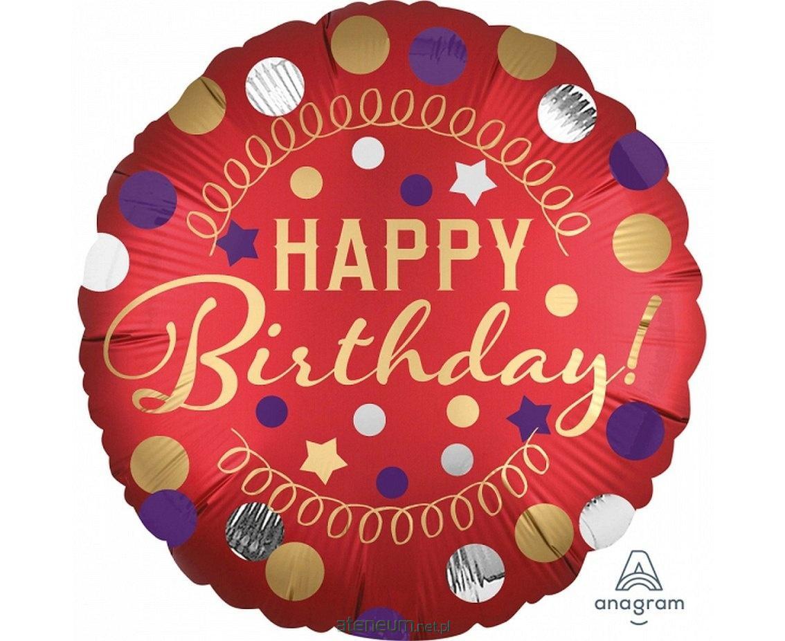 BALON FOLIOWY HAPPY BIRTHDAY, RED SATIN PARTY, 1 SZT.