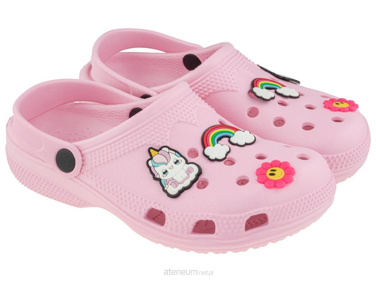 Urocze clogi dziewczęce w kolorze różowym to idealne obuwie na lato - sprawdzą się zarówno w domu, jak i na zewnątrz, np. w ogrodzie, na plaży czy podczas wakacyjnych wyjazdów. Model został ozdobiony gumowymi pinami w kształcie jednorożca, tęczy i kwiatka - po trzy na każdego cloga. Piny można dowolnie przekładać i umieszczać w otworach wentylacyjnych, co daje dziecku możliwość personalizacji i zabawy wyglądem obuwia. Clogi wykonane są z miękkiego, lekkiego i elastycznego tworzywa EVA, które zapewnia wysoki komfort noszenia, jest łatwe w czyszczeniu i odporne na wilgoć. Dzięki swojej lekkości buty nie męczą stopy nawet po wielu godzinach noszenia. Dodatkowo model wyposażony został w ruchomy pasek na piętę, który można przełożyć do przodu lub zostawić z tyłu - co pomaga utrzymać stopę we właściwym miejscu i zwiększa stabilność podczas chodzenia. Długość wkładki: 20,5 cm
