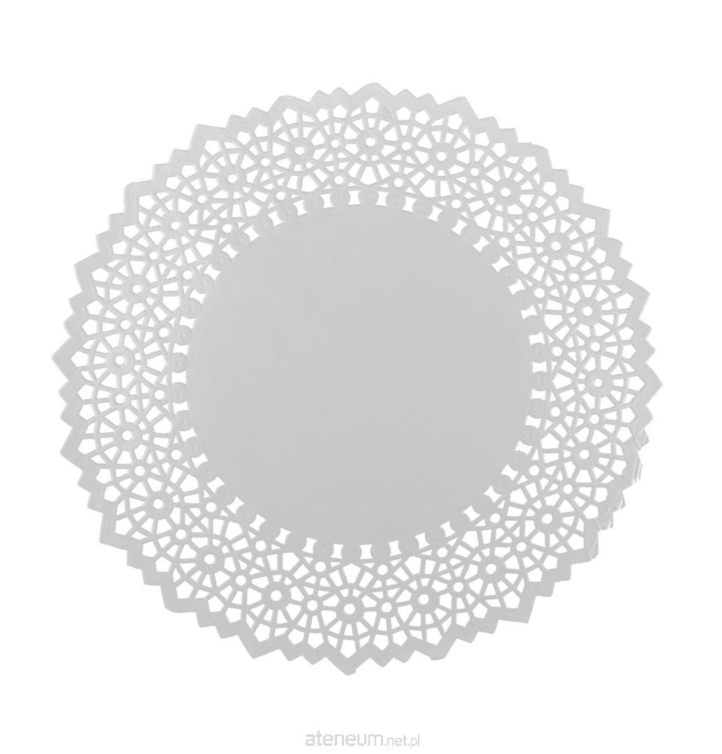 Serwetka papierowa z ażurowym brzegiem pod ciasto pakowana po 100 sztuk.