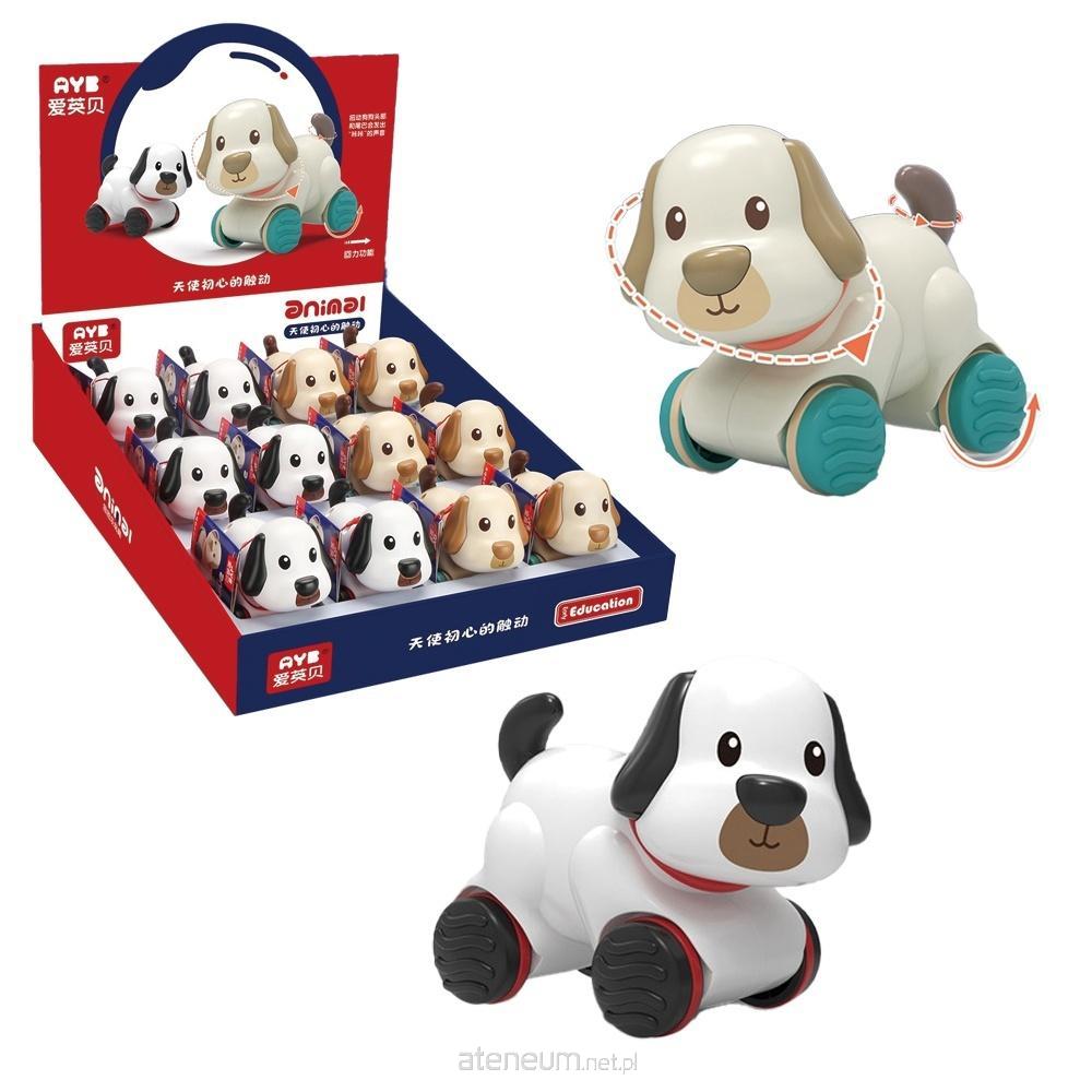 Piesek do prowadzenia na kółeczkach. W dwóch kolorach. Posiada obrotową główkę i ogonek. Ponadto piesek posiada napęd - po cofnięciu pieskiem i puszczeniu, zabawka sama jedzie do przodu Pakowanie: 12 szt./display Wymiary display'a: 29 x 36 x 29.7 cm Wymiary zabawki: 11 x 8,5 x 5,5 cm Wiek: 18+