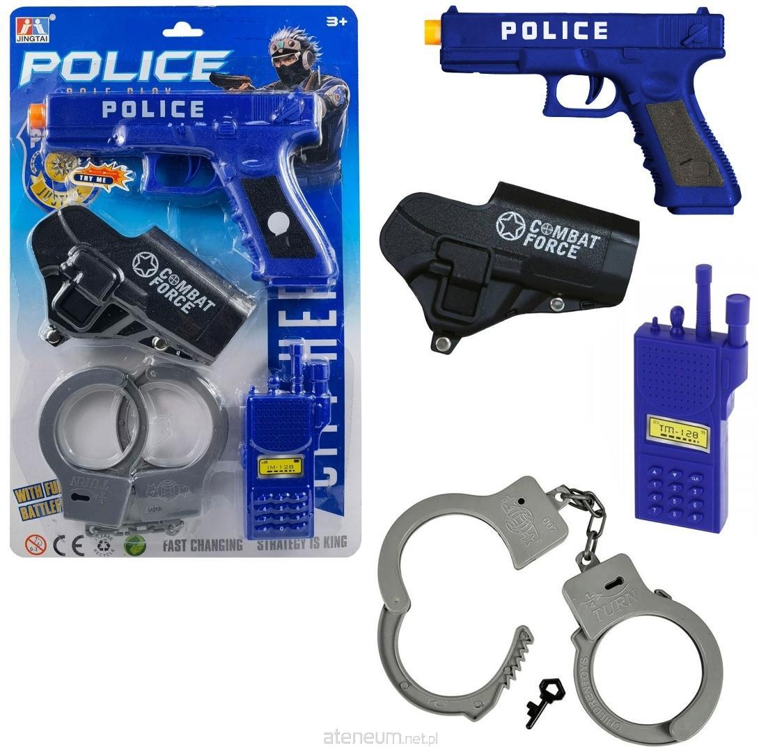 Zestaw Policyjny "Police Combat Force" - Zostań Prawdziwym Stróżem Prawa! Marzysz o tym, by zaprowadzić porządek i chronić miasto? Z naszym zestawem policyjnym "Police Combat Force" Twoje dziecko może wcielić się w rolę prawdziwego funkcjonariusza! Ten komplet akcesoriów to idealna propozycja do kreatywnej zabawy w odgrywanie ról, rozwijania wyobraźni i nauki odpowiedzialności. Cechy produktu: Kompletny zestaw dla policjanta: W zestawie znajdziesz wszystko, co potrzebne małemu stróżowi prawa: o Pistolet policyjny: Realistycznie wyglądający pistolet w niebieskim kolorze z napisem "POLICE". Posiada funkcję "TRY ME!", co oznacza, że może wydawać dźwięki strzału, dodając autentyczności zabawie. (Uwaga: zabawka, nie strzela pociskami). o Kabura: Czarna kabura z napisem "COMBAT FORCE", idealna do wygodnego noszenia pistoletu przy pasie. o Kajdanki: Metalowe kajdanki z kluczykiem, umożliwiające "aresztowanie" złoczyńców i zaprowadzenie porządku. o Radiotelefon (Walkie-Talkie): Zabawkowy radiotelefon, który dodaje realizmu policyjnym operacjom i pozwala na odgrywanie scenek komunikacji między funkcjonariuszami. Rozwój przez zabawę: Zestaw stymuluje wyobraźnię, kreatywność i umiejętności społeczne poprzez odgrywanie ról. Dziecko może tworzyć własne scenariusze, rozwijać zdolności narracyjne, uczyć się zasad bezpieczeństwa i wartości, takich jak odpowiedzialność i pomoc innym. Bezpieczne materiały: Całość wykonana jest z lekkiego i bezpiecznego plastiku oraz metalu (kajdanki), odpowiedniego dla dzieci. Wiek: Produkt przeznaczony dla dzieci w wieku 3 lat i starszych (oznaczenie "3+" widoczne na opakowaniu). Idealny na prezent: To fantastyczny pomysł na prezent na każdą okazję - urodziny, święta, karnawał czy po prostu jako zachęta do aktywnej i kreatywnej zabawy. Wielkość opakowania; 35x22x3 cm Daj swojemu dziecku możliwość przeżycia policyjnych przygód i ochrony obywateli! Zestaw "Police Combat Force" to gwarancja wielu godzin ekscytującej zabawy w roli prawdziwego bohatera!