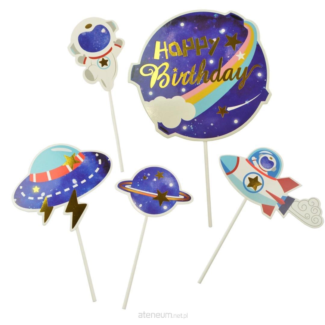 Dekoracje na piku utrzymane w stylistyce podróży kosmicznych. Ciekawy dodatek do dekoracji urodzinowego tortu. Prosty w użyciu. Dekoracje doskonale podkreślą charakter przyjęcia zorganizowanego w tematyce kosmosu. W opakowaniu znajduje się 5 sztuk. Wysokość elementów: 13-15 cm.