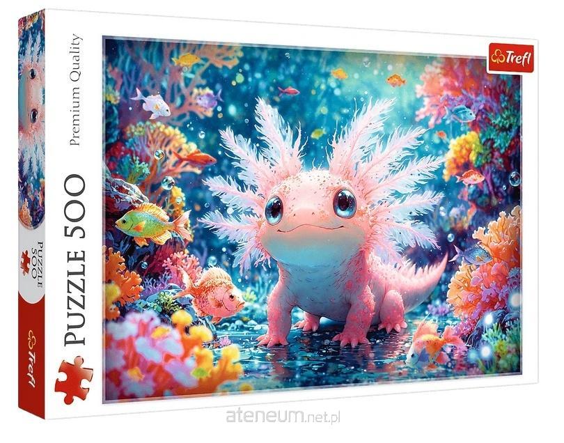 Puzzle Aksolotl składają się z 500 elementów i przedtawiają salamandrę meksykańską. Gotowa układanka ma wymiary 480x340 mm.