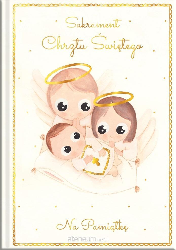 Książeczka na Chrzest w formacie A5. Oprawa twarda złocona. Autorskie ilustracje, własny dobór tekstów. Książeczka 12-nasto stronicowa z kopertą na pieniążki.