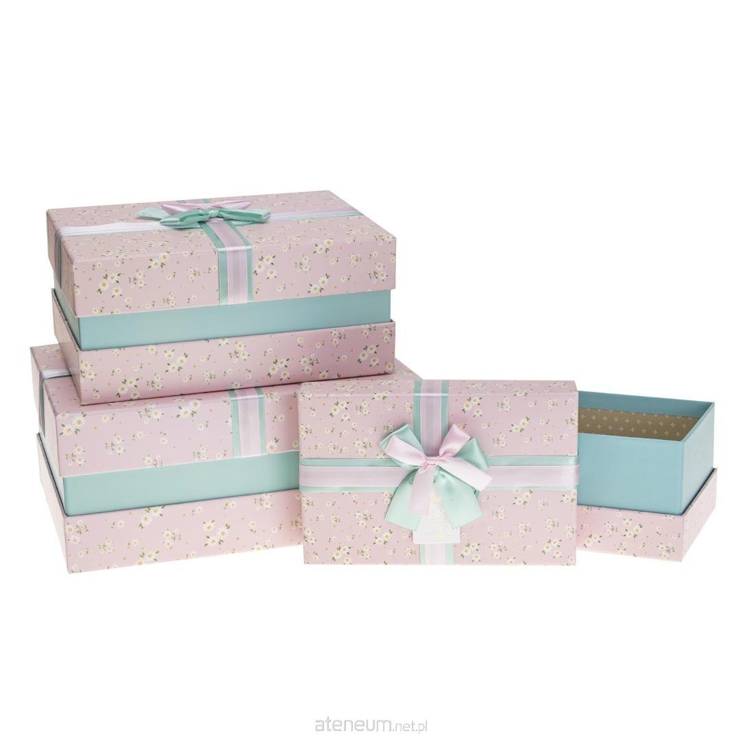 Pudełko prostokątne z kokardą 3szt różowy ROZETTE
