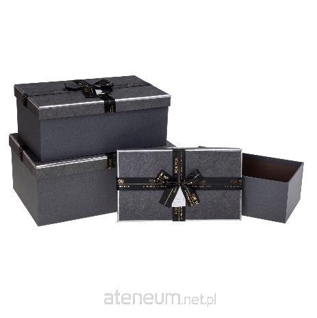 Pudełko prostokątne z kokardą 3szt srebrny ROZETTE