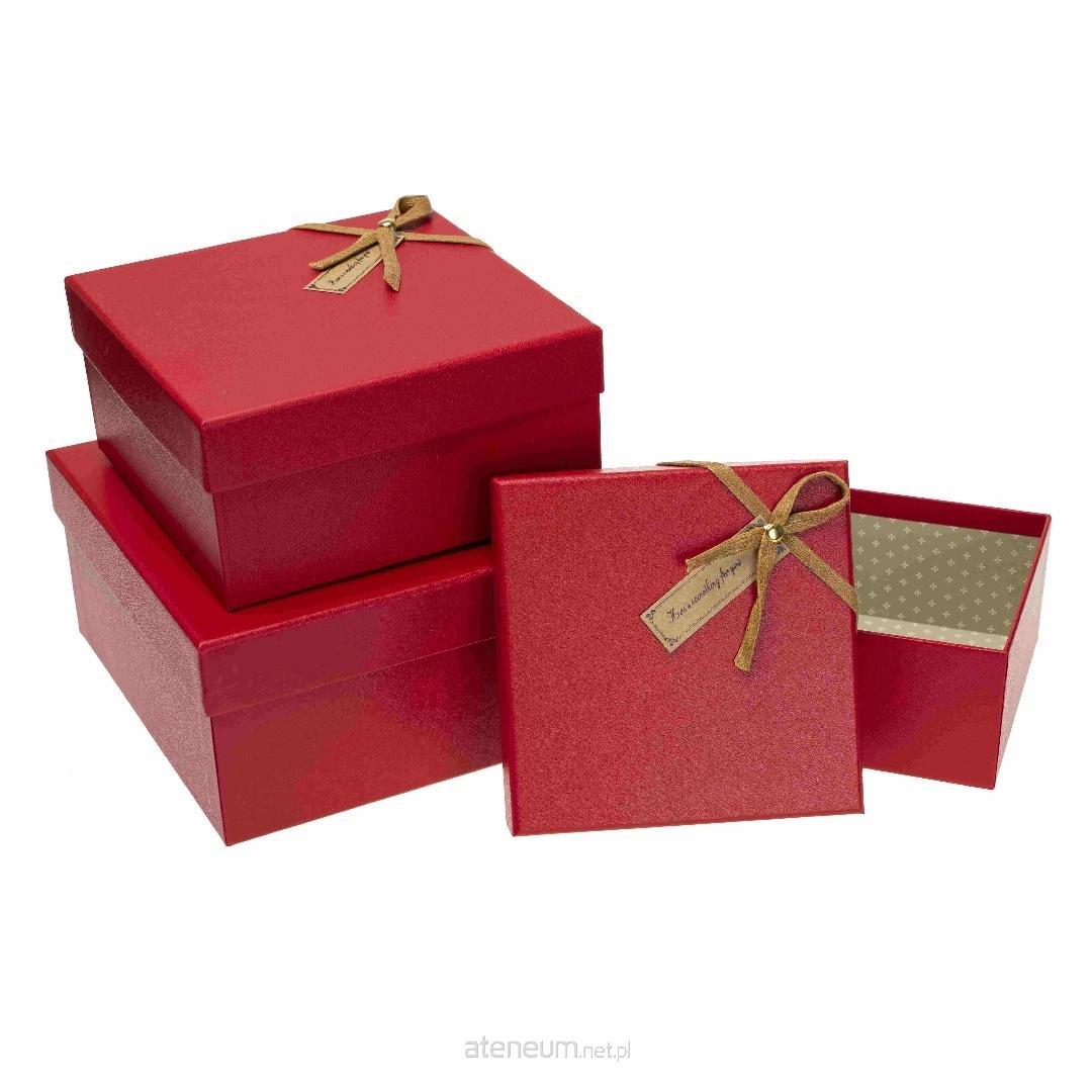 Pudełko kwadrat z kokardą 3szt czerwony ROZETTE