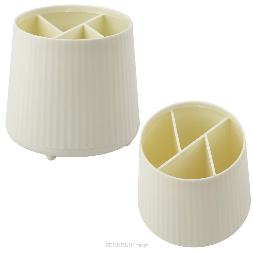 WIELOFUNKCYJNY ORGANIZER NA KOSMETYKI I ARTYKUŁY BIUROWE - BEŻOWY Ten kompaktowy organizer z przegródkami to idealne rozwiązanie do utrzymania porządku zarówno wśród kosmetyków, jak i artykułów biurowych. Dzięki przemyślanemu układowi wnętrza umożliwia wygodne przechowywanie pędzli do makijażu, szminek, korektorów, jak również długopisów, ołówków, nożyczek, linijek czy zakreślaczy. Minimalistyczna forma w eleganckim, beżowym kolorze doskonale wpisuje się w nowoczesne wnętrza - sprawdzi się zarówno na toaletce, w łazience, jak i na biurku w domu, szkole lub biurze. Organizer został wykonany z trwałego tworzywa sztucznego, odpornego na zarysowania i łatwego do utrzymania w czystości. Równomiernie rozmieszczone przegrody pozwalają na wygodne segregowanie akcesoriów według kategorii, co znacznie poprawia komfort użytkowania na co dzień. SPECYFIKACJA: Typ produktu: organizer biurkowy / kosmetyczny Zastosowanie: kosmetyki, akcesoria do makijażu, przybory szkolne, biurowe Kolor: beżowy Materiał: tworzywo sztuczne Przegródki: 5 oddzielnych komór Kształt: zaokrąglony, nowoczesny Przeznaczenie: do łazienki, na toaletkę, biurko, do szkoły i biura Wymiary organizera: 11,5 x 10,5 cm Wymiary opakowania: 12 x 11,5 x 11,5 cm ZAWARTOŚĆ ZESTAWU: 1x organizer z przegródkami