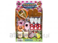 Zabawka ekspres do kawy z kubeczkami i kapsułkami. Elementy imitują prawdziwe urządzenie kuchenne. Zapakowana w kartonowe pudełko. Zabawka przeznaczona dla dzieci od lat 3. Zabawka działa na baterie typu AA. Baterie nie są załączone do zabawki.