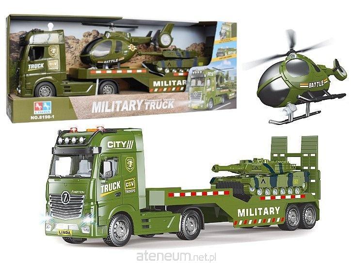 Auto z lawetą i pojazdami wojskowymi, światła, dźwięk; 55x11x17,5cm, W/B