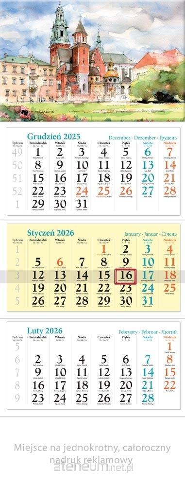 kalendarium: trzy oddzielne bloczki (30 x 15 cm), doklejone do pleców; miesiąc bieżący wyróżniony