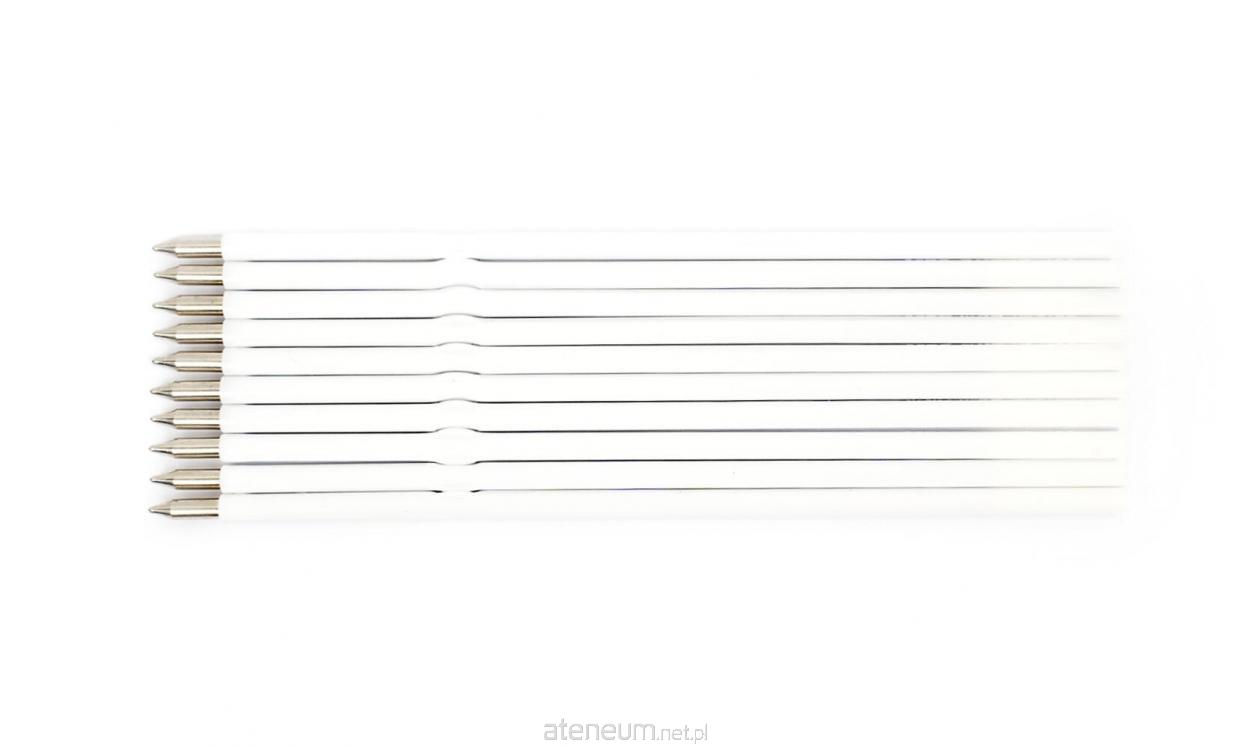 Wkład do większości plastikowych długopisów, standardowa końcówka, niebieski kolor tuszu, grubość linii 0,5 mm, długość wkładu 10,5 cm, w opakowaniu 10 szt.