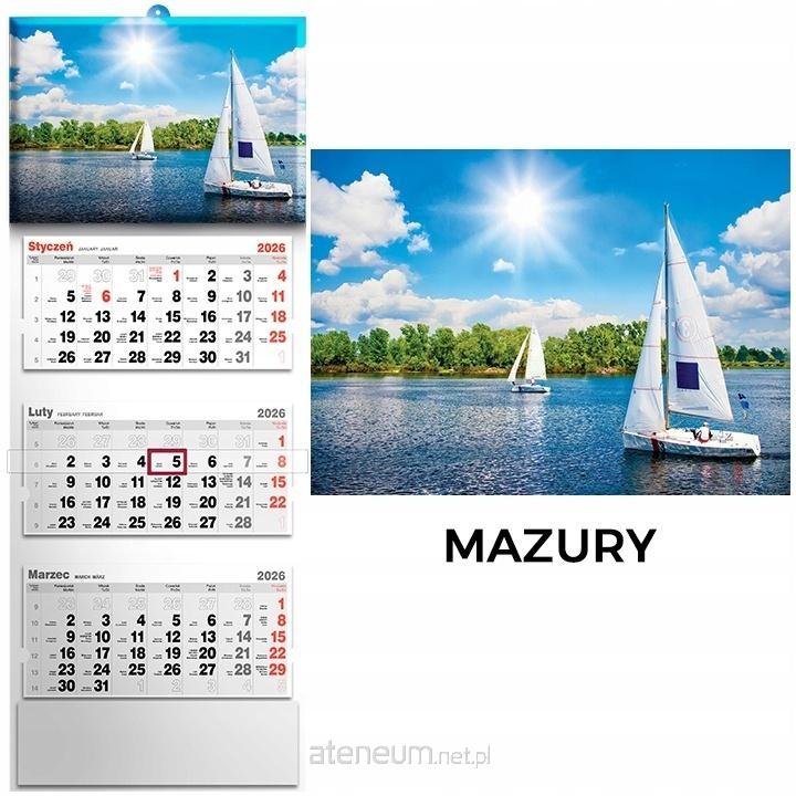 KALENDARZ TRÓJDZIELNY 2026 WYMIAR CAŁKOWITY KALENDARZA: 32 x 85,5cm GŁÓWKA KALENDARZA: Zdjęcie uszlachetniane folią błysk, z efektem wypukłości. KALENDARIUM: wym. 28,5 x 14 cm, trójjęzyczne (PL, GB, D), z numeracją tygodni i imieninami jest przytrzymywane przez kartonowe wypustki, które zapobiegają jego odstawaniu od plecków kalendarza. WYKOŃCZENIE: kartonowa zawieszka, pasek z czerwonym przesuwanym okienkiem, miejsce na notatki. WYMIAR ZDJĘCIA 32 x 22 cm ZDJĘCIE Z EFEKTEM WYPUKŁOŚCI: uszlachetnione folią błysk.