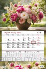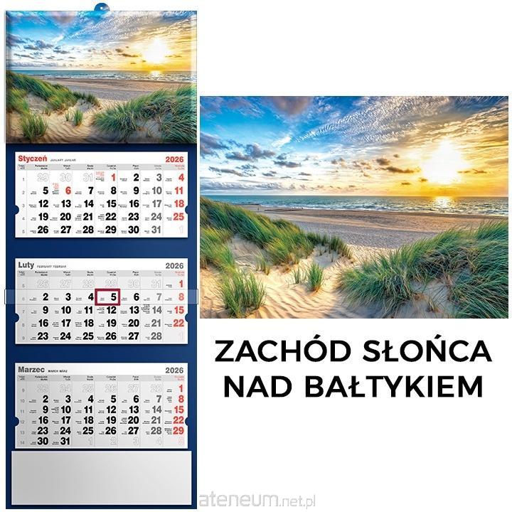 KALENDARZ TRÓJDZIELNY 2026 WYMIAR CAŁKOWITY KALENDARZA: 32 x 85,5cm GŁÓWKA KALENDARZA: Zdjęcie uszlachetniane folią błysk, z efektem wypukłości. KALENDARIUM: wym. 28,5 x 14 cm, trójjęzyczne (PL, GB, D), z numeracją tygodni i imieninami jest przytrzymywane przez kartonowe wypustki, które zapobiegają jego odstawaniu od plecków kalendarza. WYKOŃCZENIE: kartonowa zawieszka, pasek z czerwonym przesuwanym okienkiem, miejsce na notatki. WYMIAR ZDJĘCIA 32 x 22 cm ZDJĘCIE Z EFEKTEM WYPUKŁOŚCI: uszlachetnione folią błysk.