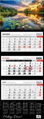 KALENDARZ TRÓJDZIELNY 2026 WYMIAR CAŁKOWITY KALENDARZA: 32 x 85,5cm GŁÓWKA KALENDARZA: Zdjęcie uszlachetniane folią błysk, z efektem wypukłości. KALENDARIUM: wym. 28,5 x 14 cm, trójjęzyczne (PL, GB, D), z numeracją tygodni i imieninami jest przytrzymywane przez kartonowe wypustki, które zapobiegają jego odstawaniu od plecków kalendarza. WYKOŃCZENIE: kartonowa zawieszka, pasek z czerwonym przesuwanym okienkiem, miejsce na notatki. WYMIAR ZDJĘCIA 32 x 22 cm ZDJĘCIE Z EFEKTEM WYPUKŁOŚCI: uszlachetnione folią błysk.