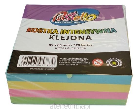 Kostka klejona kolorowa PASTELOWA, wymiar 85x85 370 kartek. Wykorzystywana do notatek i zapisków. Również do origami. Może służyć jako samodzielny bloczek lub wkład do pojemnika. Doskonały do biura, szkoły lub domu.