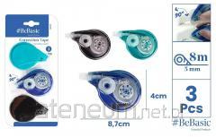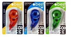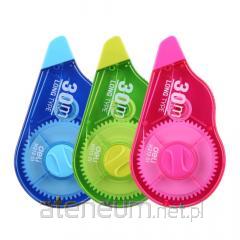 Korektor w taśmie, szerokość 5 mm, długość 15 metrów. Ergonomiczny kształt obudowy dopasowany do dłoni. Wysokiej jakości taśma korekcyjna odporna na zerwanie z idealnie przylegającą do powierzchni papieru warstwą korygującą, po której można pisać bezpośrednio po zastosowaniu. Do użytku na większości rodzajów papieru. Przezroczysta obudowa pozwala śledzić pozostałą ilość taśmy korygującej. Estetycznie zapakowany w twardy blister. Obrotowa końcówka pozwala używać go w dwóch płaszczyznach.
