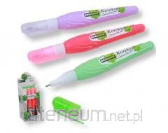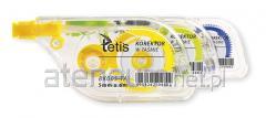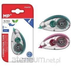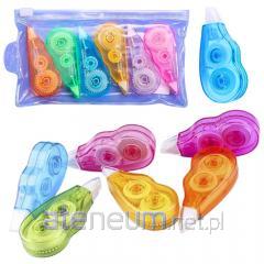 Korektor w taśmie, szerokość 5 mm, długość 20 metrów. Ergonomiczny kształt obudowy dopasowany do dłoni. Wysokiej jakości taśma korekcyjna odporna na zerwanie z idealnie przylegającą do powierzchni papieru warstwą korygującą, po której można pisać bezpośrednio po zastosowaniu. Do użytku na większości rodzajów papieru. Przezroczysta obudowa pozwala śledzić pozostałą ilość taśmy korygującej. Estetycznie zapakowany w twardy blister. Obrotowa końcówka pozwala używać go w dwóch płaszczyznach.