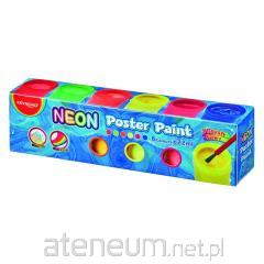 Farby plakatowe 6 kolorów. Pojemność 20 ml. Farby na bazie wody o intensywnych kolorach. Znakomitą przyczepność pozwala na malowanie takich podłoży jak: papier, karton, drewno, ceramika, kamień. Wymalowane powierzchnie po wyschnięciu są matowe o intensywnych barwach, odporne na działanie światła i ścieranie. Wyprodukowane w Polsce.