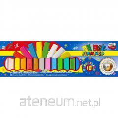 Plastelina 18 kolorów. Przeznaczona do zabawy, nauki modelowania, tworzenia prac plastycznych, odciskania, wykrawania foremkami. Elastyczna, łatwa do modelowania, intensywne kolory. Nie brudzi rąk i nie przywiera do podłoża. Wyprodukowane w Polsce.