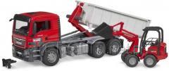 MAN TGS z kontenerem i minikoparką