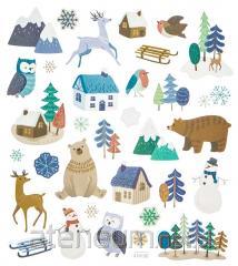 Naklejki z brokatem zimowy pejzaż 33szt