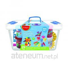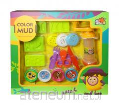 - w zestawie: pachnący piasek puszysty w czterech kolorach, 6 plastikowych foremek, 1 zabawkowa łyżka i 1 mata;