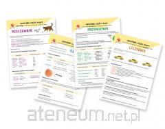Zestaw zawiera trzy dwustronnie drukowane tablice wydrukowane na grubym papierze dwustronnie zalaminowane w formacie A4.