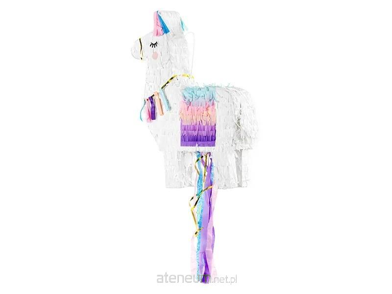 Piniata w kształcie lamy, mix kolorów, do wypełnienia upominkami, wymiary ok. 41 x 49.5 x 10 cm.